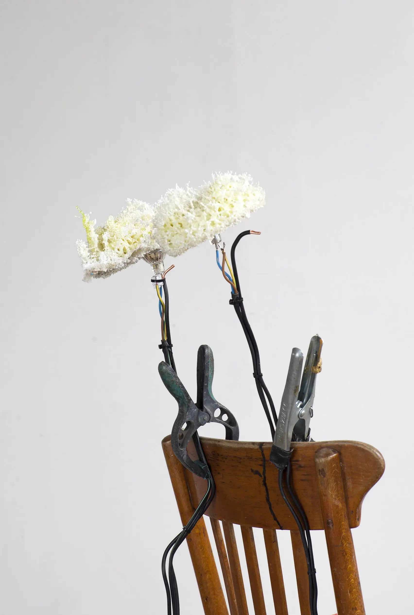In primis la Natura viene ricreata e rigenerata nello spazio denominato Laboratorio dell’artista. Immagini, fotografie, appunti e disegni alle pareti, materiali di scarto, elettrici ed elettronici, alambicchi, lampade, sostanze chimiche sono tutti strumenti e oggetti del mestiere che divengono per l’artista elementi generativi di una nuova bellezza naturale. Nello spazio sono presenti anche alcuni video che riportano suoni e processi di lavoro reali di Kintera nel suo studio a Praga.