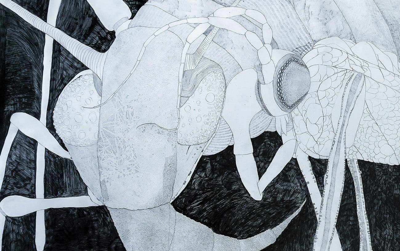 On the third floor of the Collezione venue, at the center of an almost labyrinthine display presenting many different works from recent years, visitors will find a workshop containing the Atelier’s latest advanced-stage projects, inspired by the revolutionary figure of Marie Curie. These two huge, archetypal, entomological “graphitographs,” shown to the public for the first time, suggest that a poetic gaze can transform the fragile graphite of an ordinary pencil into an element that irradiates everything in its path, “penetrating deeper than a radium crystal.”